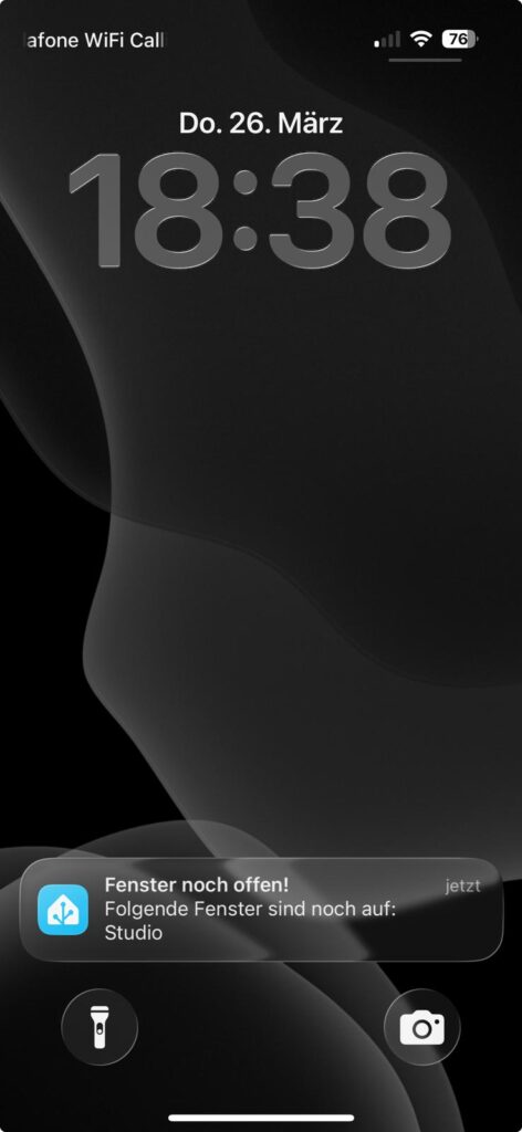 Sendet eine Push-Nachricht, wenn die Haustür geöffnet wird und noch Fenster