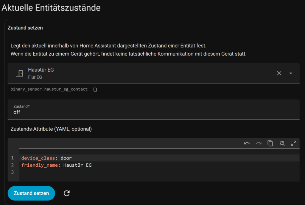 - Zustand eines Sensors manuell ändern